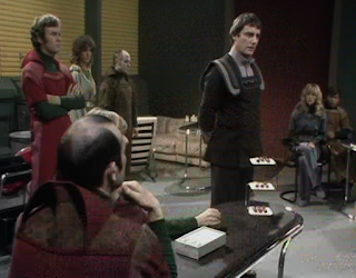 The station is “independent”, but all the same Blake pretends they’re a Federation ship. (You wonder why he didn’t just say they were civilians, it’s a less obvious lie.) They snag a talented doctor to work on Gan, except he has twigged who Blake is and intends to warn the Federation and wait for backup. It’s interesting seeing the propaganda at work: the doctor believes Blake is a murdering psycho, his assistant thinks otherwise. Vila and Avon end up threatening them to get the operation finished in time, which seems to further both arguments. (His assistant at this point struggles to justify their own behaviour in endangering Gan’s life, let alone the Liberator’s supposed crimes.) For whatever reason Terry Nation can’t leave it at that and the doctor - on returning to the station - murders his impartial boss for trying to prevent him destroying the Liberator. The last shot before the Federation mistakenly blows them up is of the doctor staring madly at his hands. Okay, so he’s crazy, and the debate is now less interesting. Brilliant.