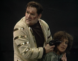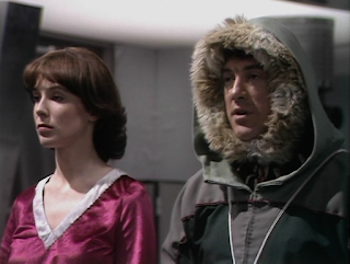 WHO’S WHO: Peter Miles appears, known for a few Whos but mostly as Nyder, Davros’s No. 1. Jacqueline Pearce would later appear in The Two Doctors, and more recently worked with John Hurt and Paul McGann at Big Finish - bringing her total to at least four Doctors.