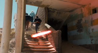 But hey, that’s one of the problems with producing a script like this. You can talk up the planet’s pitfalls and terrors all you like but the budget is the budget. We get a great looking landscape, an eerie empty structure, some robots and the aforementioned (quite creepy when they shut up) CGI bandages. “Toxic water” is conveniently cheap – take regular water, sayit’s toxic, then nobody is stupid enough to get in it – the “toxic atmosphere” is mentioned but never seems to be an issue, apart from some apparently isolated acetylene fields. As for “killing machines and creatures inhabiting every corner,” ehh, no. Stay out of the robots’ way and don’t go to sleep next to some rags and you’re pretty safe. No one even gets thirsty or hungry en route. Several naps are had. Wake up! This is supposed to be exciting!