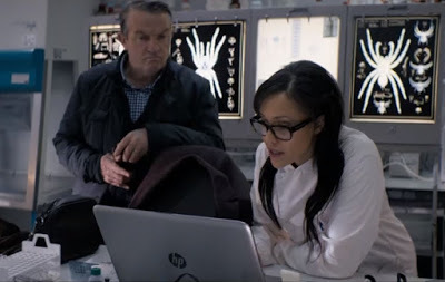 Sooo... you've got scientists creating super-spiders...and no one makes a joke about Spider-Man?There’s no feeling of people on the street being aware of all this, despite the bizarre “reports of unusual spider behaviour”, and with pre-titles sequences seemingly a thing of the past (boo) there’s no immediate chance for the spiders to make an impact. The episode is confined to Yaz’s block of flats and a hotel where some of the spiders are massing. And that can’t be all of them, surely? At the end, aren’t there still some out there? Didn’t Graham say the one he found had shed its skin? What about the one the Doctor trapped with some vinegar (hmm) and then said she’d come back to? Whoops.