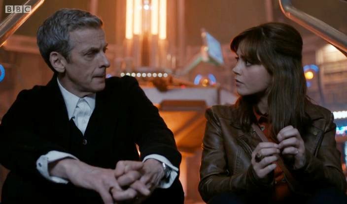 This is pretty much how I feel about Clara.Her previous relationship with the Doctor is also summed up, and I'm not convinced by that either, possibly because it never worked in the first place. The Eleventh Doctor was hardly sexless, particularly with the right people (River, Tasha), but I don't think it's fair to label him a "boyfriend" when it comes to Clara. Okay, he looked young, he pretended to be her boyfriend last Christmas, and he once made a (hideously out-of-nowhere) reference to her bottom. But are we forgetting what he was actually like? All that "I don't understand humans" stuff? Clara drops hints at how much she (insert L word)s Matt's Doctor, but I've never seen much solid evidence of that either, besides the odd eyebrow-raisingly random reference. This is someone who was quite happy to go home between TARDIS adventures, until the previous episode when she suddenly wasn't. Their whole "relationship" never convinced, so it seems weird to pivot so much around it now.Anywho, Jenna does a great job with the material, with Capaldi, and when it comes to facing down the bad-guy. Right or wrong, now all that character bumf is out of the way there's promise for the series ahead. And okay, speaking of promise... what's the Doctor like?