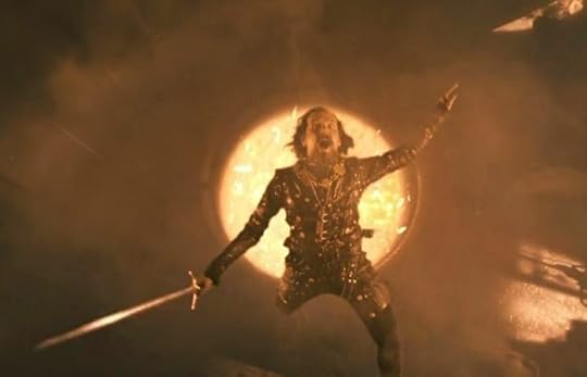 Hey, cool shot! Reminds me of Die Hard, aka Alan Rickman,aka the Sheriff Of... god damn it!Meanwhile, Jenna Coleman has fun, especially when she's wheedling information out of Ben Miller's rather pitiable Sheriff. It's unfortunate that last week's moral tussle between her and the Doctor has gone temporarily out the window – but they're (very obviously) trying to reassure us he's not so bad after all. Clara spends much of the episode drawing parallels between the Doctor and Robin for the same purpose, and this is exactly as embarrassing as it sounds, especially when you've made him the most cartoony Robin Hood imaginable. It's illogical – Robin insists he's not a hero, but there's little practical difference between that and what he's doing – and sometimes poorly written. "When did you stop believing in anything?" "When did you start believing in impossible heroes?" "Don't you know?" That's actual dialogue. Urgh.