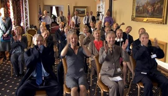 So, bollocks plot, mostly-bollocks bad guys, frequently bollocks script, and yet somehow in the middle of it, moments of sublime perfection. I'm never sure where the final twenty (!) minutes slot into all that, as the Doctor delays his regeneration so he can visit all his companions. This is a clang!-obvious final goodbye to the denizens of the Russellverse, but we already had one of those in Journey's End. Nothing new here, besides randomly marrying Martha to Mickey, which could be a happy ending if there were ever any suggestion that they wanted to do that. (They've met once. Martha was engaged at the time.) I suppose it's nice to send Donna comfortably into the sunset, and kudos for not backtracking on her amnesia. It's annoying that we must see Rose again, but there's a pleasing symmetry to ending this version of the show more or less where it started in 2005. Overall I much prefer the quick, bittersweet goodbye to Christopher Eccleston, but then that was a better episode all round.