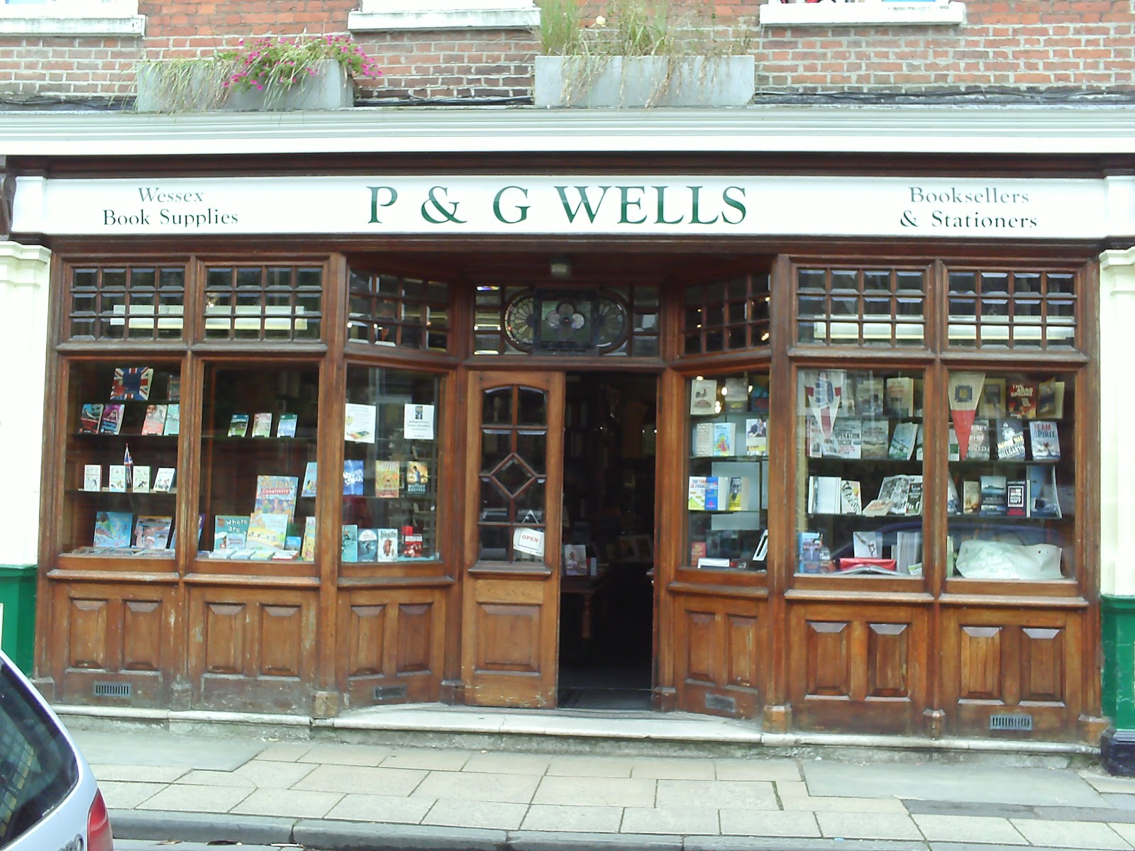 Last week I had the pleasure of visiting Winchester as part of my holidays. Just across the road from the Cathedral we came across this lovely bookshop, which to my mind is just what a bookshop should be. Each section had a hand-painted illustration above it.You can see the hand-painted signs above the shelves, including the spitfire for WWII, just under the bunting.