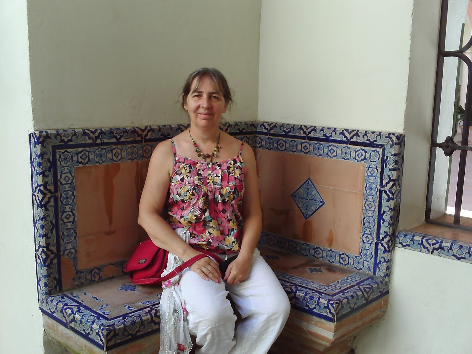 Outside the Museum in Seville, bag contains camera and notebook!The last few months I have thought of little else but the novel, and as soon as I had finished it I succumbed to the dreaded flu virus. So instead of all the enjoyable things I'd planned to do, like enjoy coffee with friends again and spend more time out side in the garden I've had six days in bed with the lemsip and too many hankies.