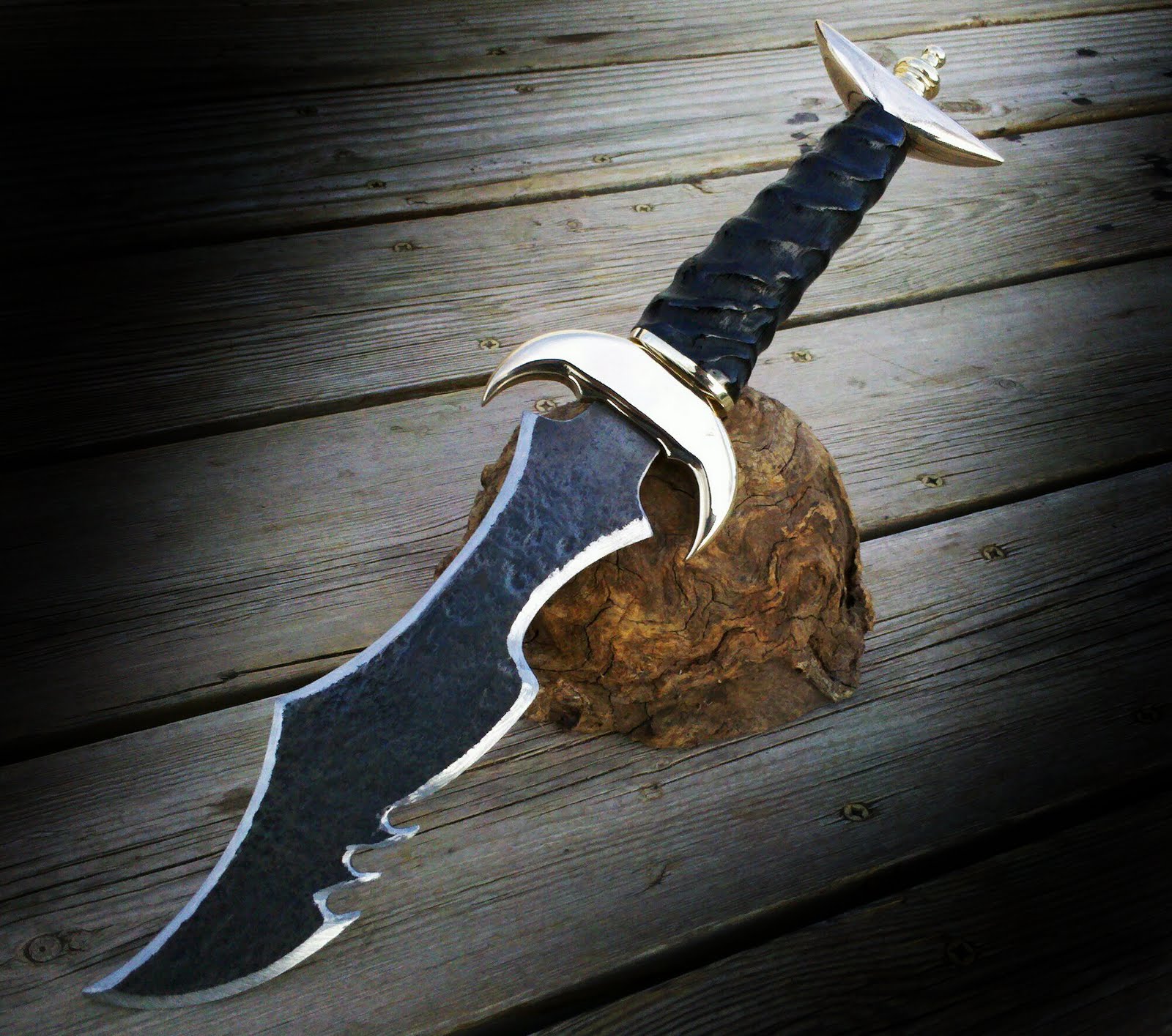 Have you ever wondered what Vance's athame might look like? Well here you go, courtesy of Laramie Jackson Custom Knives.I was so excited when Laramie came to me and said he was going to make a knife to go with my books. He said he'd found a special piece of metal that he wanted to use for it and he set out to make a custom design for me. I knew he did great work because I've had the opportunity to see some of his other show pieces. They tend to get bought for a LOT of money! One of the interesting things about Laramie's work is that he often recycles materials to work with. He does some scouting and hiking about in the woods and comes up with old deer antlers to use as handles or interesting pieces of wood, like the knot this knife is resting on.So can you tell what's recycled on this knife?If you guessed the blade, then you would be correct. The blade for this knife was made from a very old, rusty chainsaw blade which helps to give it that lovely patina. I think Laramie tagged Vance's style right on since Vance likes to take things that are vintage and upgrade them to something new, like he does with his motorcycle.So, thank you Laramie for the awesome athame! I love it and I will display it proudly.