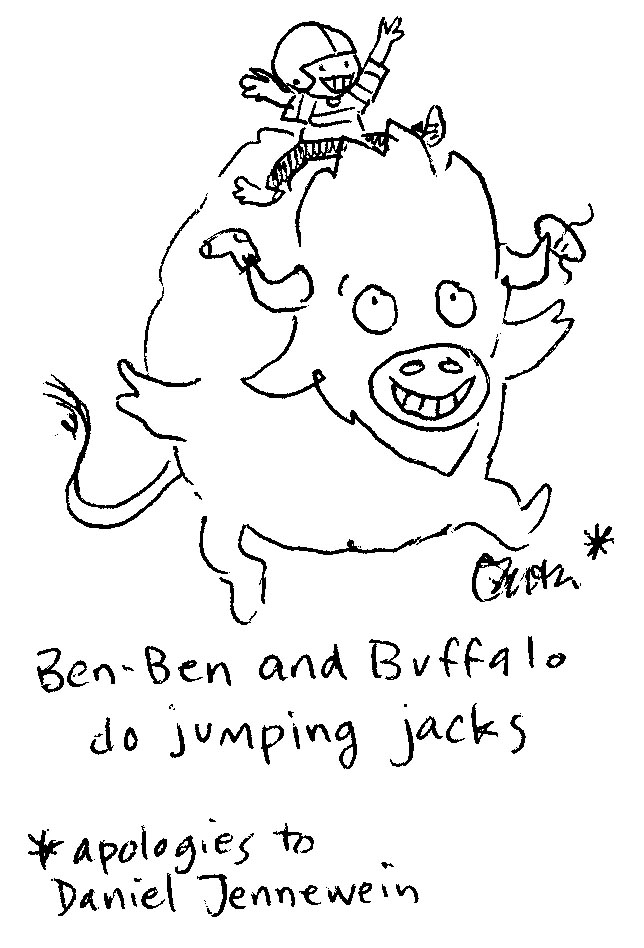 5. How do you think Buffalo and Ben-Ben would get along? (Ben-Ben is Ellie McDoodle's hyper little brother)Audrey's answer: