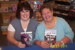 , on sale at Amazon.com -- if you haven't gotten your copy, now is the time to download it. If you don't have an Amazon Kindle e-reader, it's still available in most all electronic formats at http://bookstrand.com/dangerous-deceptionI had my first book signing and my friend, Marie Higgins, just sent me a picture of us sitting together at Barnes and Noble in Layton. I signed my book, Never Too Late, My Love . It turned out great and I want to thank all my friends and family for coming out and supporting me.