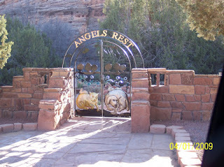 The most impressive was the Angel’s Rest Pet Cemetery where the first thing we noticed was the beautiful sounds of wind chimes. We turned off the engine of our truck and as the gentle breezes blew, the chimes sounded like an organ playing a majestic song. Rock pathways led to a gazebo and small benches where you can relax and enjoy the calm serenity. The cemetery is not about dying but an affirmation of life where the beautiful rock canyon holds urns, vases and memorials of the little animals who have brought so much to our earthly life.