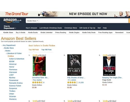 For the second day running, Christmas Kink : Six Festive Fantasies, is number one in the erotica chart on Amazon UK