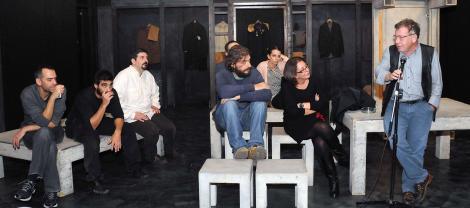 Κάπως έτσι ήταν και η συζήτησή μας το Σάββατο. Μάλλον δεν θα μπορούσε να είναι διαφορετικά, με έναν θίασο του οποίου τα μέλη συναποφασίζουν τα πάντα και μοιράζονται τις ευθύνες και τις δουλειές της παράστασης, έναν πολιτικό επιστήμονα και αντιπρόεδρο των ΑΣΚΙ, έναν συγγραφέα θιασώτη της αποανάπτυξης και ένα κοινό αποτελούμενο από αναγνώστες της ιστορικής εφημερίδας της Αριστεράς.