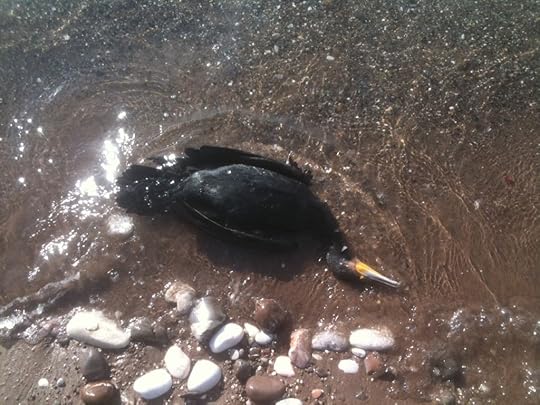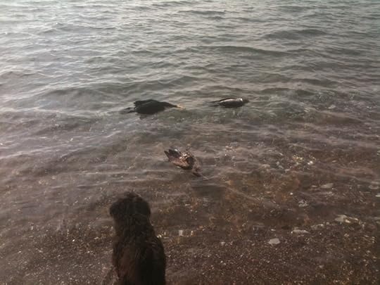 Δεν είχα προλάβει να φτάσω ως την άκρη της, ήρθαν τα δίποδα με δυο οχήματα και σταματήσανε πάνω στην άμμο. Κατεβήκανε κάτω και στα γρήγορα αρχίσανε τις τουφεκιές. Μπαμ, μπαμ, μπαμ, μπαμ, μπαμ, μπαμ, μπαμ, εφτά τουφεκιές η μια μετά την άλλη με διαφορά δευτερολέπτου, γύρισα το κεφάλι μου αλαφιασμένος και τους είδα από μακριά, έστρεψα κατά πίσω, μέχρι να πλησιάσω είχανε φορτώσει κάποια πουλιά στα αυτοκίνητα και φεύγανε ολοταχώς, τρία νεκρά κείτονταν μες στη θάλασσα.