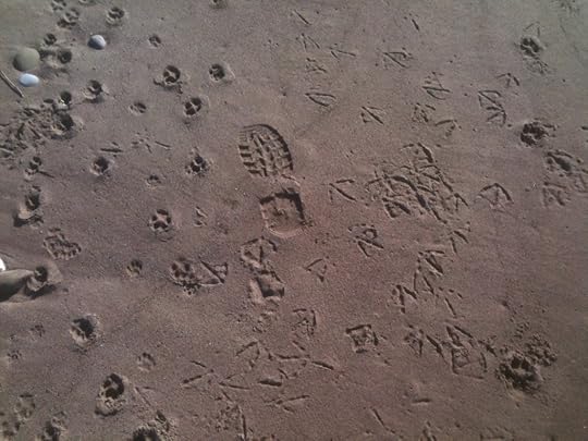 Χνάρια πλασμάτων φυσικών στην αμμουδιά. Πίνακας Τέχνης