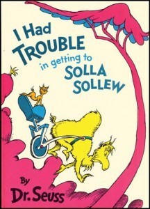 My son has a habit of demanding that I read the same books again and again every night, so that, from my point of view, we’ve completely worn out some first-rate stories (The Cat in the Hat, Green Eggs and Ham, The Velveteen Rabbit, etc.). Right now I hope he’s up for more of Solla Sollew.