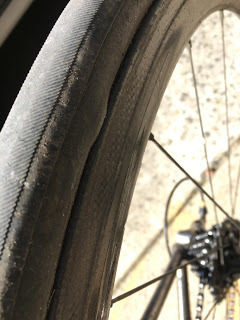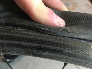 And yesterday when I finally got around to removing the tire I noticed my non-Enve crabon wheel had indeed eaten my "open tubular:"
