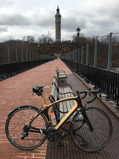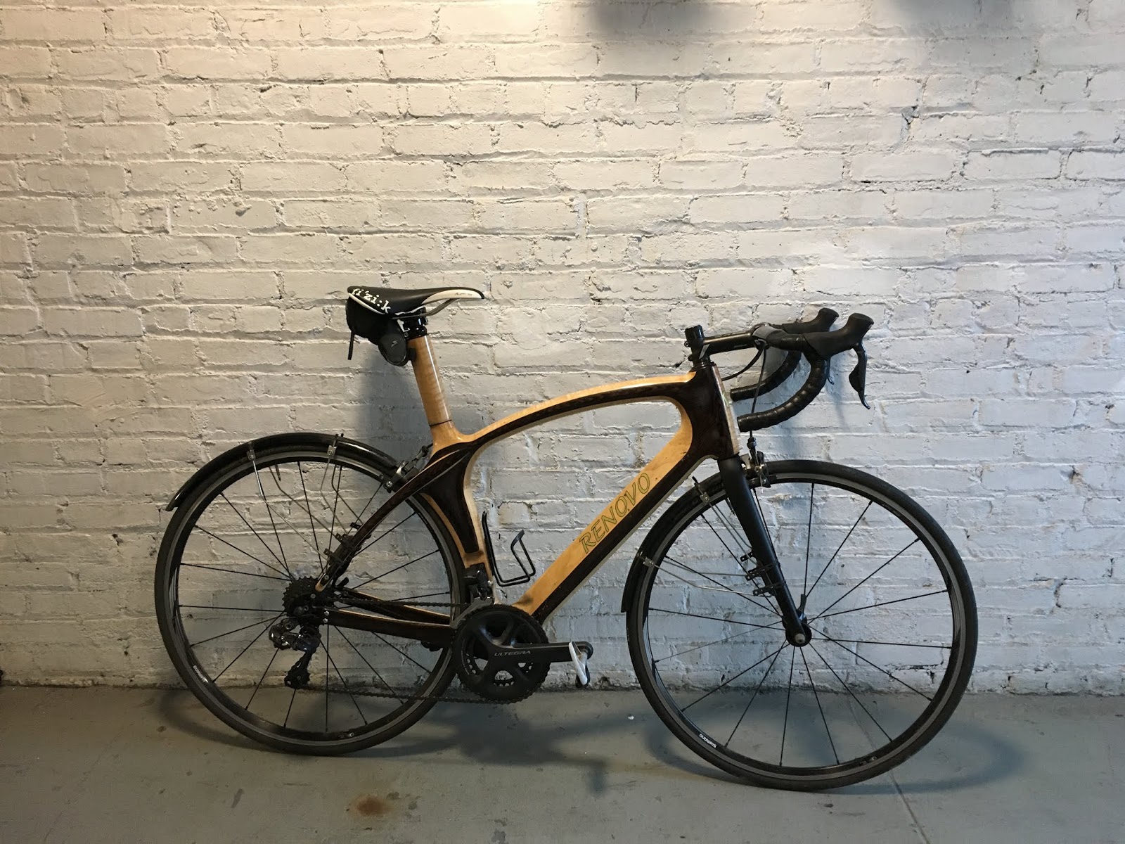 It was also interesting to ride the Renovo after having ridden my new crabon bike almost exclusively for the past couple weeks. The crabon bike rides beautifully, and even right out of the box it's easily the lightest bike I've ever owned, which always makes a bike feel faster even if it really isn't. Still, despite the cheap wheels and Gatorskins I'm currently palping on the Renovo, the bike has a certain preternatural smoothness to it, and while I'm hesitant to ascribe mystical qualities to frame materials I can't help suspecting that there is something special about a bike made out of wood.