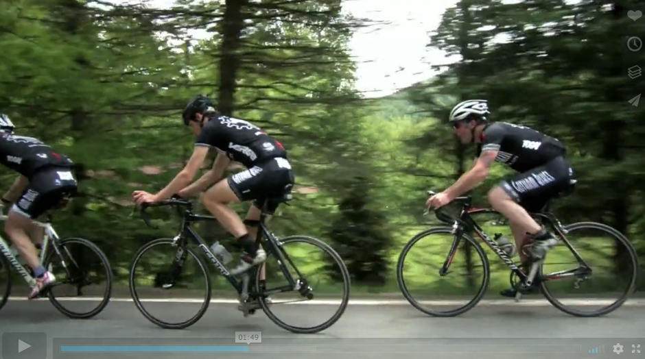 I did most of my "racing" (if you can call it that) on the Renovo last year, but it's a little short of gear and tall of headtube for that application. Also, much more frustratingly, it's got that one water bottle cage on the seat tube. (Or seat trunk since we're talking about a bike made from trees.) I've mentioned this on numerous occasions, and for mellow rides that placement is perfectly fine, but when you're hunched over the bars and clinging desperately to the wheel in front of you it's roughly a thousand times more annoying to grab a bottle from the seat tube than it is to grab one from the down tube.
