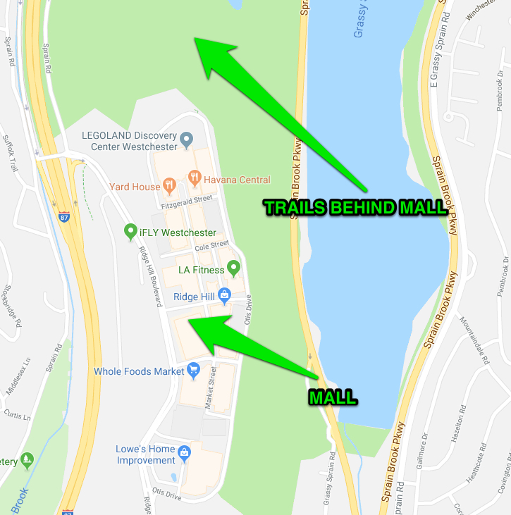 But yes, they're not forbidden at all. In fact the official name is Sprain Ridge Park, the mountain bicycling is very much allowed, and it's a pretty popular spot. However, I prefer to call them the Trails Behind The Mall because they are in fact behind an outdoor shopping mall: