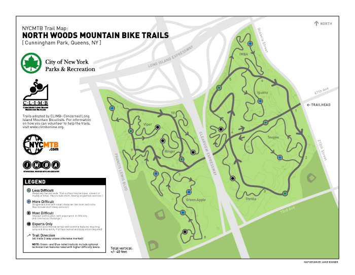 "Queens?!?," you say. Indeed. For Queens is the home of Cunningham Park, which contains a compact yet tremendously enjoyable network of all-terrain bicycling pathways: