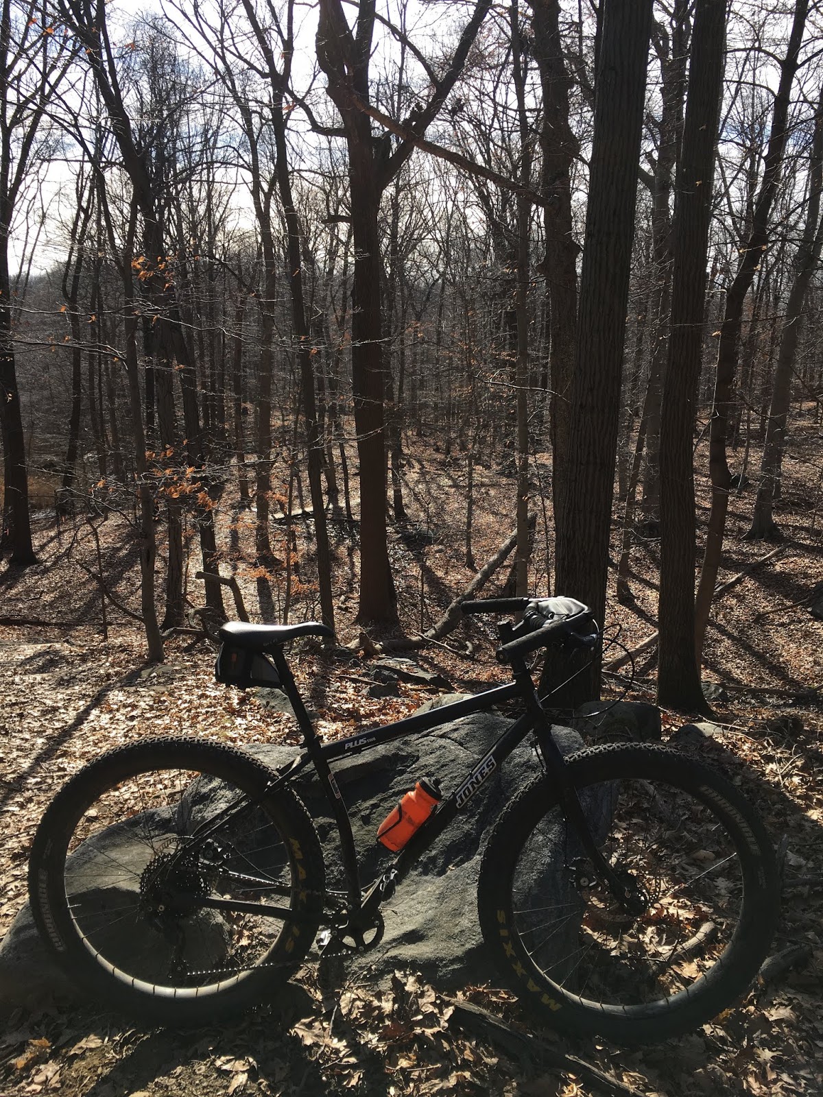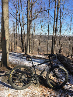 I almost always ride a singlespeed at Cunningham because the smooth, rolling terrain is ideal for riding without shifting. However, this time I took the Jones, and I'm glad I did, because there were lots of frozen ruts left behind from people riding in the mud and I was able to float right over them thanks to those plush, grippy, and apparently out-of-style plus-sized tires.Hey, my wheel size may be the stylistic equivalent of some doofus in dad jeans and white Under Armor sneakers, but I'm okay with that because rigid bikes with plush tires are awesome.
