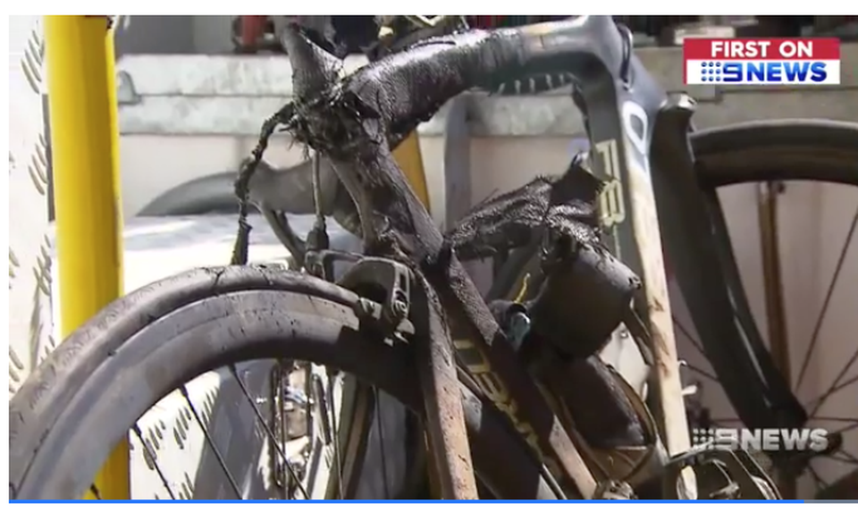 In other news, the big story is that some guy's Pinarello Dogma blew up: