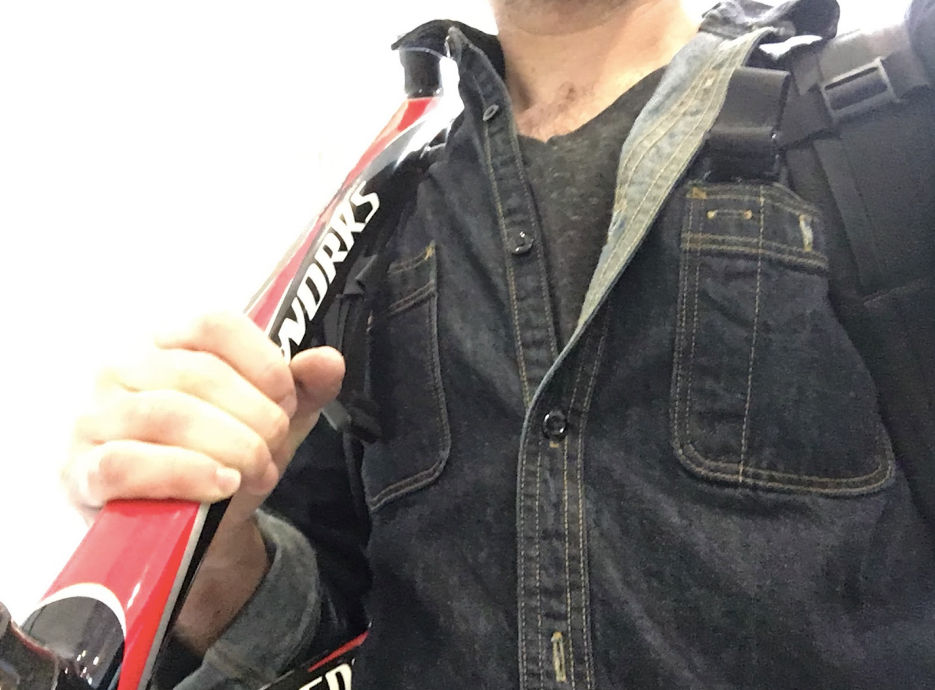 A cashmere Helmut Lang sweater (yeah, you read that right) I've had for at least 20 years;A jacket Giro sent me back in like 2013. It was from their "New Road" collection, which as far as I can tell no longer exists. The idea was road bike clothes that didn't look like road bike clothes, or something. Like this: