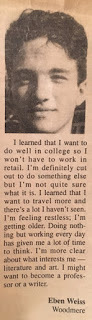 Sellout Status? Oh come on.20-21 Or Thereabouts: Intern/Assistant At a Book Publishing HouseTowards the end of college I got it into my head I wanted to work in book publishing, so I started interning at a pretentious small press (I realize that's redundant, all small presses are pretentious) in SoHo. The other interns were all Barnard students who had absolutely no interest in being there, which was great for me because it created the impression that I had a work ethic. I worked for free but eventually they started paying me and after I graduated they helped me get a real job.