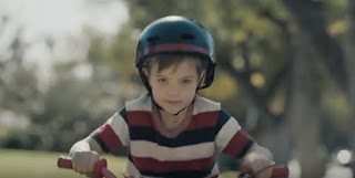 Bullshit. I set a good example by riding a bicycle in the first place--in flip-flops with my remaining hairs fluttering unfettered in the breeze--and pointing out all the other stupid shit everyone else is doing. The lessons continue off the bike, and my son and I are currently engaged in picking this moronic commercial apart: