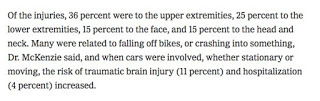 What's really vexing about this article though is that it's all about how you and your kids should wear helmets at all times, yet it provides absolutely no compelling evidence for this. In fact the closest it comes to citing any sort of figures is this extraordinarily convoluted paragraph: