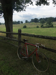 That is of course the Drysdale from Classic Cycle, which I've been remiss in riding, and so I corrected that by heading out today in high Retro-Fred style right down to the shoes: