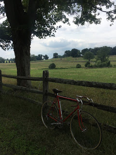 By now time was becoming a factor (I had to be home to parent), so not only did I give up on my Stone Barns repast but I also abandoned the trail and simply bushwhacked to the nearest roadway where I emerged sweaty, dirty, and irritated. No sooner had I remounted when another of my Outside columns came to life and a driver attempted to stop me for directions. Before he could even finish I replied with my usual "I don't know I don't live around here," at which point the driver began to argue and insist I must know where he wanted to go, and the fact that I didn't put the Jones through his windshield should qualify me for the Nobel Peace Prize.