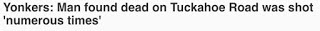 YONKERS - A man who was found dead near Tuckahoe Road Monday morning was shot "numerous times," police said.