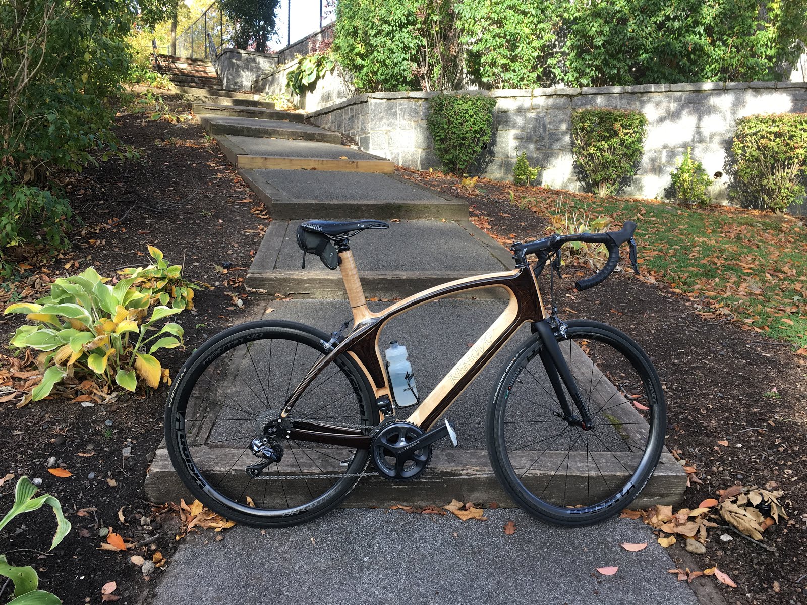 The wood bike of course has electronic shifting, which all sarcasm aside is pretty amazing and extremely fun to use--the front shifting in particular is so good that when you press the button you say out loud, "Are you fucking kidding me?" Even so, if money were no object I have to say I'd still go with the mechanical shifting, mostly because I like actually feeling the shift, but also because I resent having to plug in a bike.