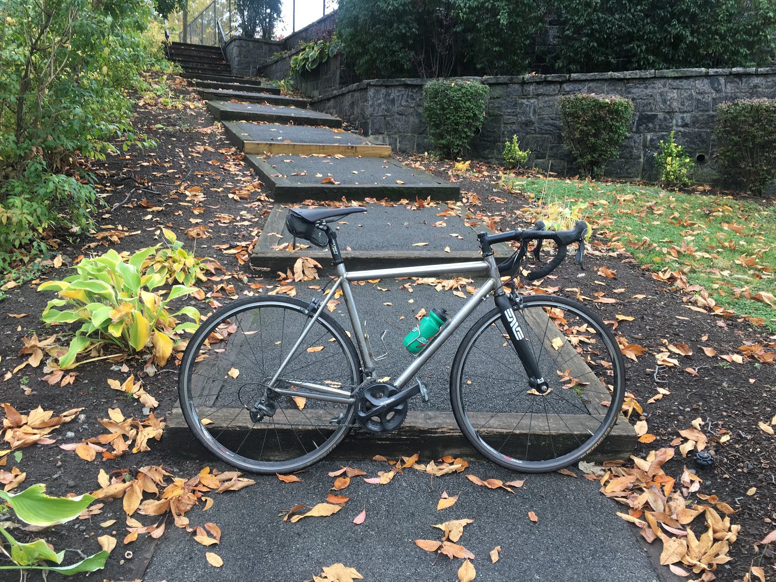 Anyway, at this early stage I'm not going to say anything other than that the bike is really fun to ride and makes me feel super fast even though I'm not--though for the basis of comparison I hopped on my trusty Ritte and that too felt pretty damn good, cheapo wheels and all: