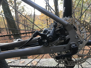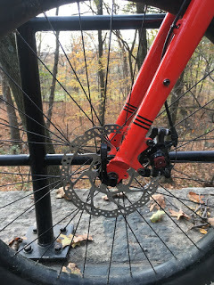 So now I'm palping a pretty sweet Forté/Avid mechanical disc brake mullet, which will no doubt inspire disgust in all the mountain Freds but which I find oddly satisfying.