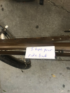 I did, however, return to my bike to find a note on it. "I hope your ride back," it began suggestively...