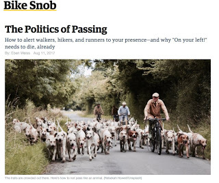 Here's the deal: riding at someone while frantically ringing your bell, even if they're where they're not "supposed" to be, is like protesting the fact that someone didn't clean up after their dog by stepping right into a pile of its shit.