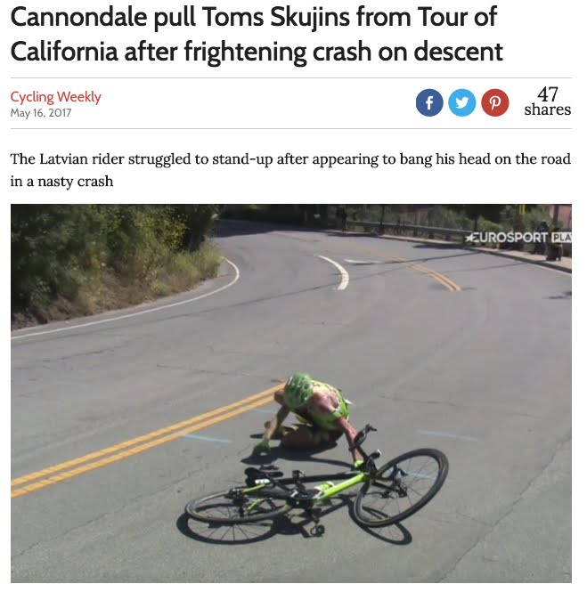 There has been much hand-wringing in the Fred community since Toms Skujins's nasty crash in the Tour of California: