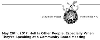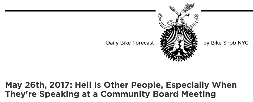Sadly, this hangover is not due to excessive libation. Rather, it's because I spent three hours steeped in stupid at last night's community board meeting, which you can read all about on the Bike Forecast: