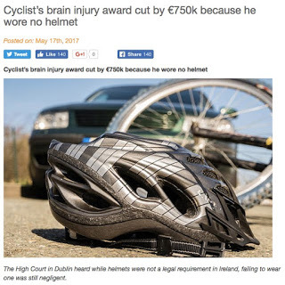 But sure, it certainly makes sense that the cyclist was 20% responsible for this. In fact they should have docked him another million for not wearing a parachute. After all, if only he had been then after being thrown into the air he might have floated gently to safety.