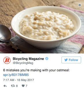 Lastly, where would we be without Bicycling? For example, did you know you're making six (6) mistakes with your oatmeal?