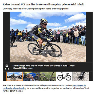 Therefore, the Fred Media must dismiss any criticism of discs on the part of the pro peloton as the Fredly equivalent of "fake news," or else the amateur Freds won't buy new disc brake bikes.