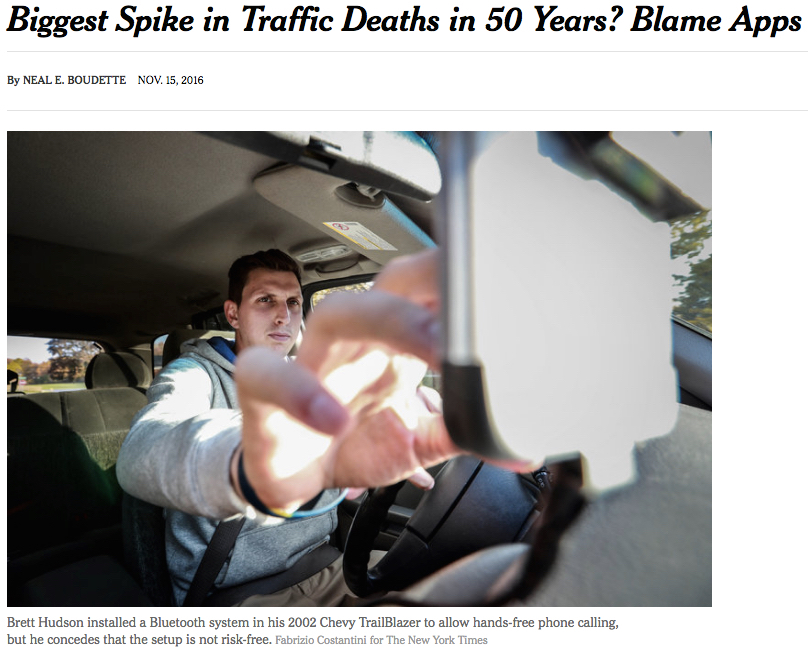After steady declines over the last four decades, highway fatalities last year recorded the largest annual percentage increase in 50 years. And the numbers so far this year are even worse. In the first six months of 2016, highway deaths jumped 10.4 percent, to 17,775, from the comparable period of 2015, according to the National Highway Traffic Safety Administration.
