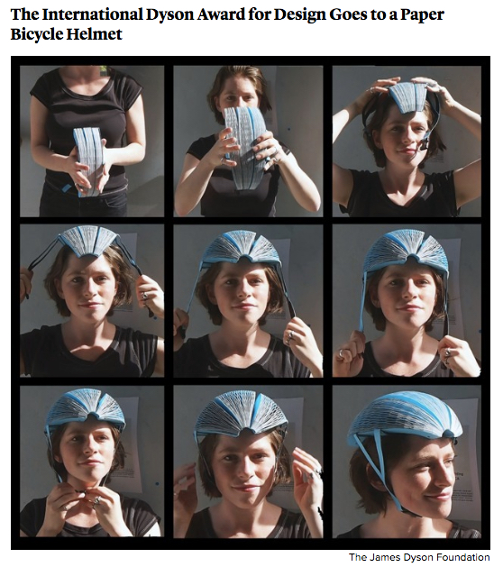 Lastly, remember that paper bike helmet? It won that Dyson award: