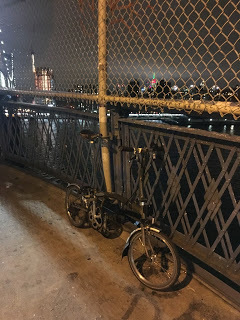 As a middle-aged "woosie" who no longer has anything to prove, one of the things I appreciate most about the Brompton is that it lets me "curate" my commute for maximum "woosie compliance." For example, yesterday morning it was raining heavily, so I took it on the train. Then by the evening conditions were pleasant, so I headed home from Brooklyn on it: