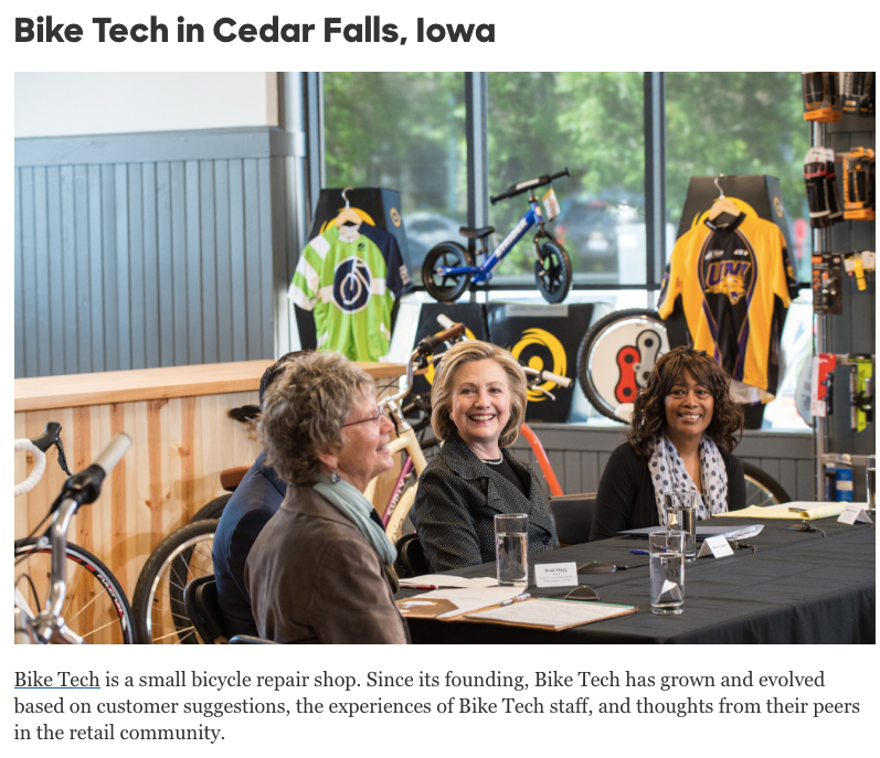 As for the other candidates and their respective connections to cycling, Hillary Clinton had a PR opportunity at a bike shop in the early days of her campaign: