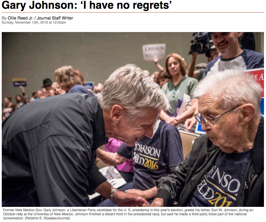 Gary Johnson has run for governor of New Mexico twice and won both times, and he has run for president of the United States twice and lost both times.