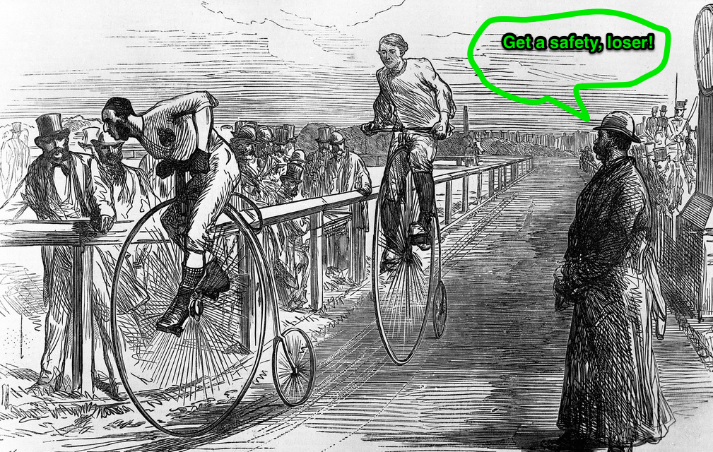 Plenty of people laugh at this (and rightfully so), though to her credit she was ahead of her time in terms of sheer bicycle-related smugness--though had she recorded the song today she'd no doubt have made obligatory mention of her Nutcase helmet.