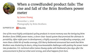 In other news, if you're wondering what happens to all those Kickstarters that get funded immediately and then you never hear about them again, consider the story of the Brim Brothers shoe-mounted power meter: