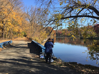 Yesterday was a perfect day for perambulation here in the northern precincts of the city, and I took advantage of it by leashing up a few of my seventeen (17) children for a stroll in the park. People in floppy hats were painting: